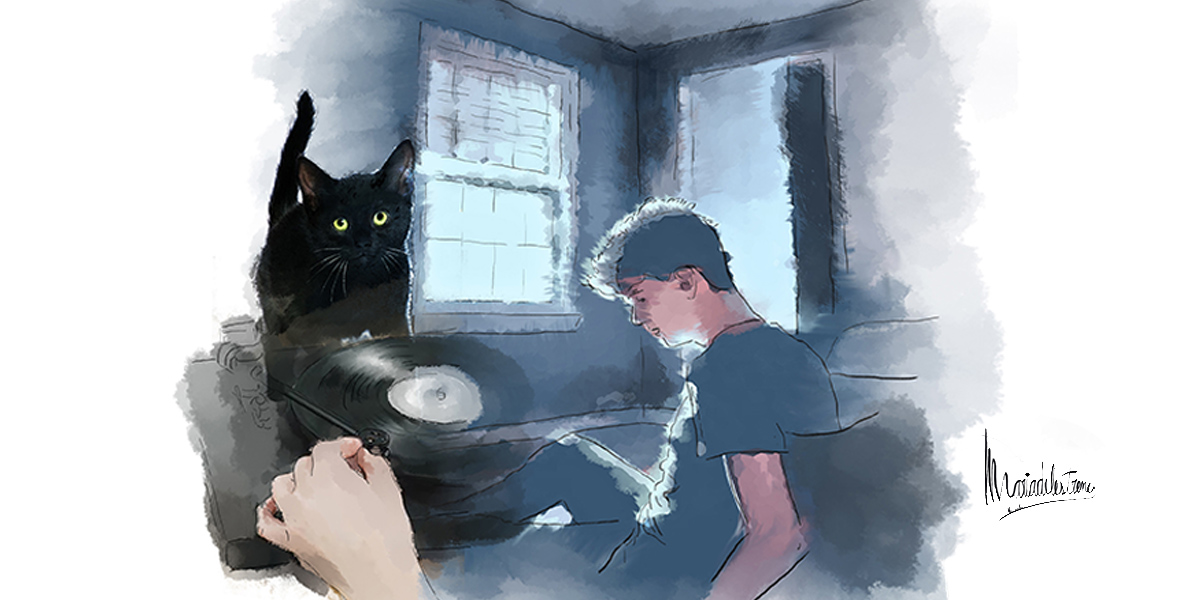 Dins la tristor, la melancolia, la soledat… la infelicitat a la qual tothom té dret, apareixia com qui no s’ho espera una escletxa de llum… en aquell cas era una boleta peluda i càlida que miolava desesperadament buscant l’atenció del seu amo. Dos ulls grossos i curiosos treien el cap per la porta i observaven detingudament en Luca, qui ja havia tornat totalment a la realitat. Enmig un intens duel d’esguards, el gatet decidia fer el primer pas realitzant un afectuós acostament. No va dubtar en adoptar-lo quan topà amb un anunci d’una casa de pagès, on s’havien vist totalment desbordats per la inesperada ventrada de sis gats. La matinada que es va endinsar en la història de Joy Division, va servir per quedar fascinat per la trajectòria del líder i vocalista Ian Curtis, de tal manera que va decidir batejar el felí amb el mateix nom d’aquest. La idolatria que professava cap als qui considerava déus i deesses de la música era força desmesurada. En Luca va sentir aquell refrec acompanyat d’un ronc i ja sabia que venia després. Es va agenollar per agafar al seu amic i va prosseguir a acariciar-lo afablement. El recordava a la sensació d’una mà passant finament per sobre un braç i, a l’instant, l’arribada d’una agradable esgarrifança on l’esquena s’encorba i els pèls s’ericen.
