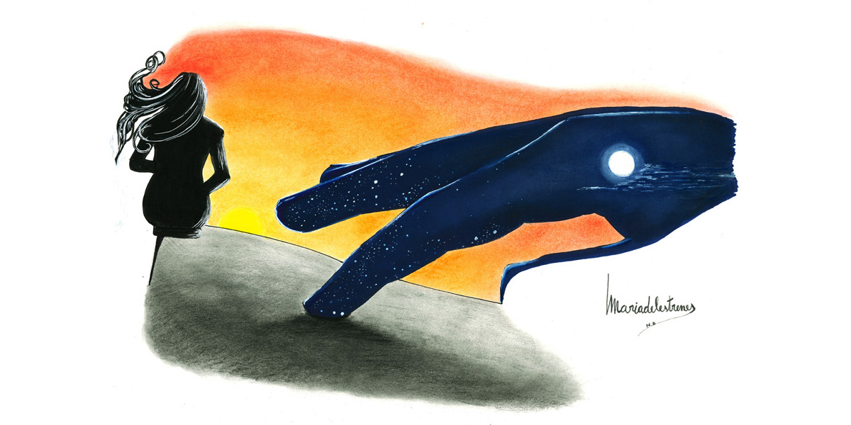 Obro la porta i un raig de llum ataronjat il·lumina tot el passadís, les tassetes de vidre canvien de color, camino fins a l’habitació però abans em quedo parada davant els finestrals del balcó: la posta de sol em paralitza. Surto i m’agafo a la barana rovellada, el corrent d’aire s’entrellaça amb el meu cabell creant unes pessigolles darrere l’orella que em fan mossegar els llavis i tancar els ulls.