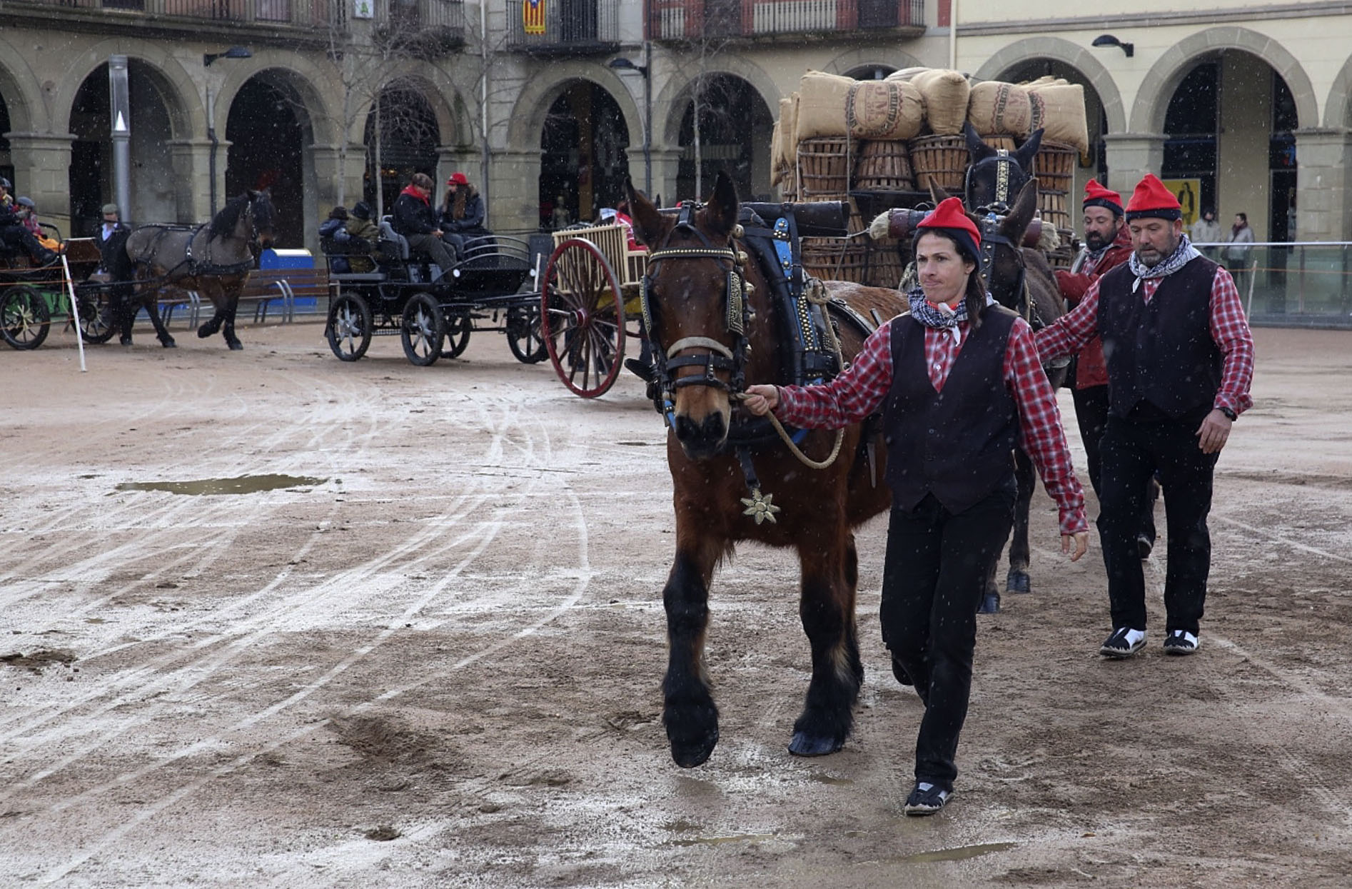 “És com la festa major d’hivern”. Així descrivia l’alcalde de Manlleu, Àlex Garrido, la més que centenària Festa dels Tonis de Manlleu, que aquest diumenge va tornar a congregar moltes persones per veure passar una quarantena de carros i carretes, disposats a desafiar una pluja intermitent que no va aconseguir deslluir la festa molt arrelada a la ciutat. Encapçalant el passant d’enguany, Pere Riera va exercir de banderer, i Miquel Collell i Josep M. Collell ,el de cordonistes. Els seus homòlegs infantils van ser Guim Autet com a banderer, i Mireia Codinach i Íria Autet com a cordonistes.