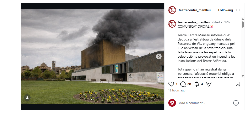Els Pastorets de Manlleu i els de Vic sempre se les foten pel Dia dels Sants Innocents. Avui des del compte del Teatre Centre de Manlleu s’informava que hi havia hagut un incendi a L’Atlàntida de Vic per la fallada d’una de les espelmes de la celebració dels quinze anys de la representació.