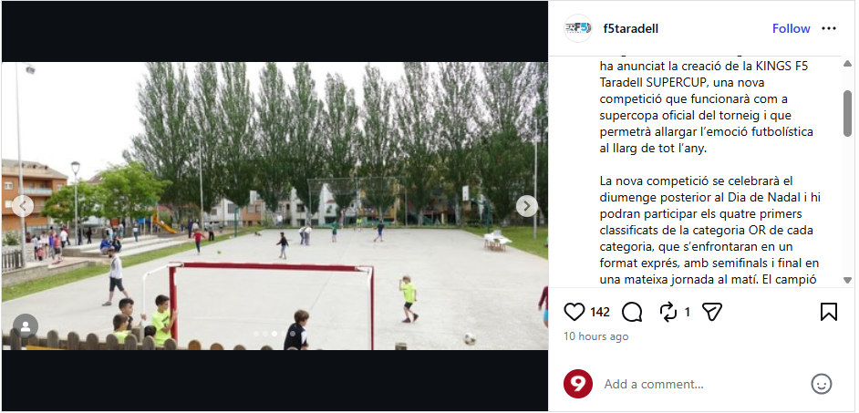 A Taradell, que no en tenen mai prou amb el seu exitós torneig de futbol, han anunciat ara que crearan la Kings F5 Taradell Cupercup, una nova competició que funcionarà com a supercopa oficial del torneig que permetrà allargar l’emoció futbolística durant tot l’any. No diuen res del què han hagut de pagar a Gerard Piqué ni a Ibai Llanos i companyia per portar aquí la competició, que es jugarà en diverses pistes del poble.