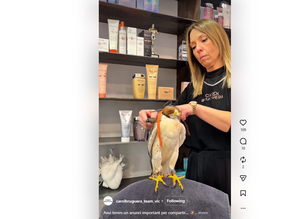 La coneguda cadena de perruqueries osonenca Carol Bruguera també ha anunciat precisament avui que obre una nova línia de negoci. Les clientes podran portar ara també les seves mascotes a les perruqueries perquè les posin a l’última moda. En un vídeo compartit a les xarxes socials hi havia qui hi anava amb el seu gos, però també s’hi veu una àliga.