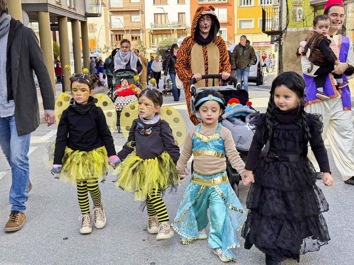 La rua de Carnaval va tornar a omplir diumenge al matí els carrers més cèntrics de Prats amb la participació de vuit comparses, entre les quals hi havia esquimals, el fons del mar o diferents personatges de Doraemon, Bola de drac o Els 101 dàlmates.