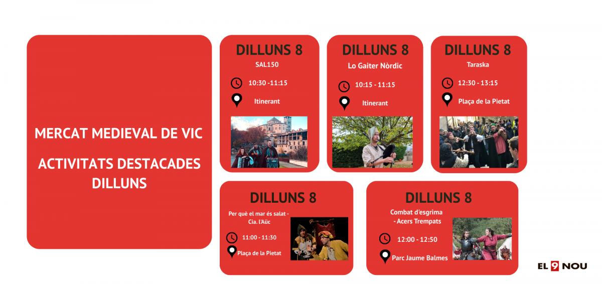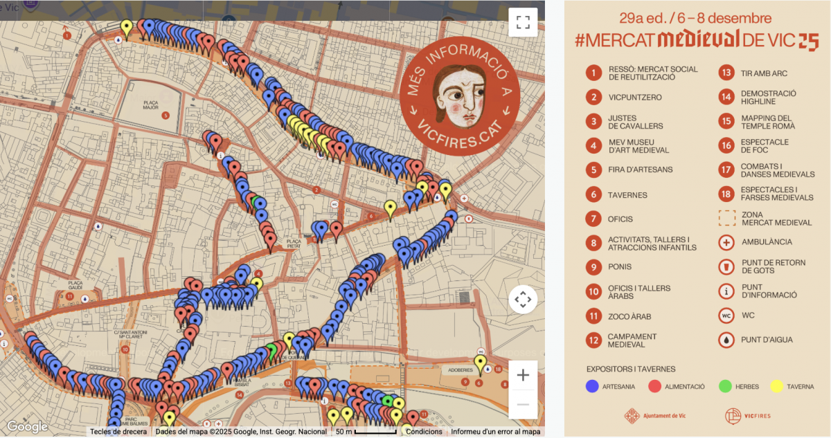 Com a novetat, s’estrena L’Èter del Mercat Medieval, un concurs per reconèixer la creativitat, la qualitat i l’originalitat dels productes del mercat. La iniciativa està oberta a tots els expositors, amb quatre categories: artesania, alimentació, gastronomia i art o productes singulars. Serà un jurat professional qui esculli els quatre guanyadors, que rebran el distintiu “Producte Èter del Mercat Medieval de Vic 2025” com a reconeixement a l’excel·lència i autenticitat del seu treball.