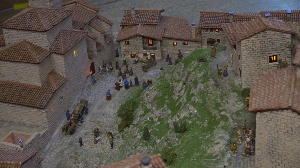 La joia de la corona de l’exposició és, segons els organitzadors, la recreació del Castell de Miravet elaborada pel pessebrista Joan Sagalés. “És una reproducció del castell al temps dels templers, amb el poble i el riu Ebre al fons. Tot l’any hi treballo, començo el de l’any següent abans de desmuntar l’actual”, explica Sagalés. Per a ell, el més difícil és mantenir la constància i coordinar la maqueta amb les figures pintades, assegurant que tot sigui coherent i detallat.