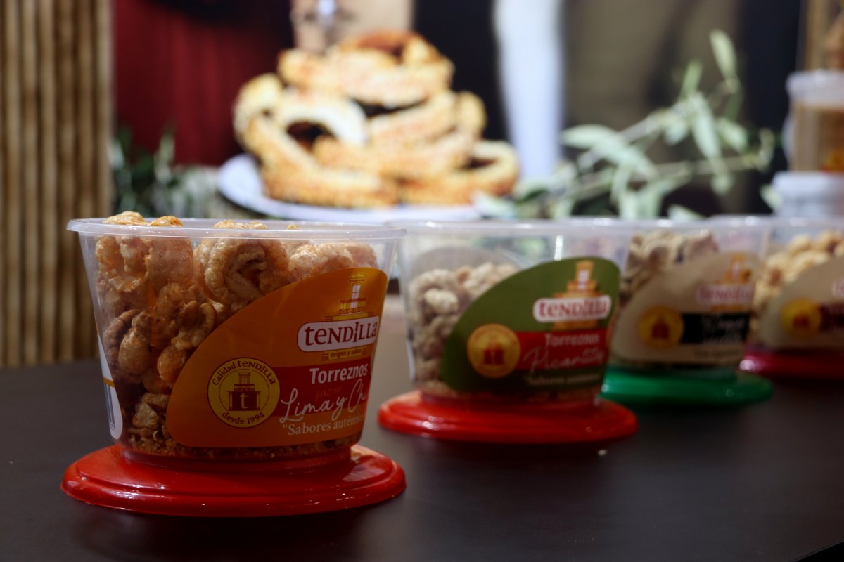 Enguany, la firma porta uns torreznos amb gust de xili i llima, fa més de 30 anys que treballen amb l’escorça de porc per “obrir i consumir”. Amb l’objectiu de “diversificar” una mica el mercat, presenten diversos sabors, perquè “la gent demana sabors”, diu Sonia Andrés, de l’equip comercial, a l’ACN.