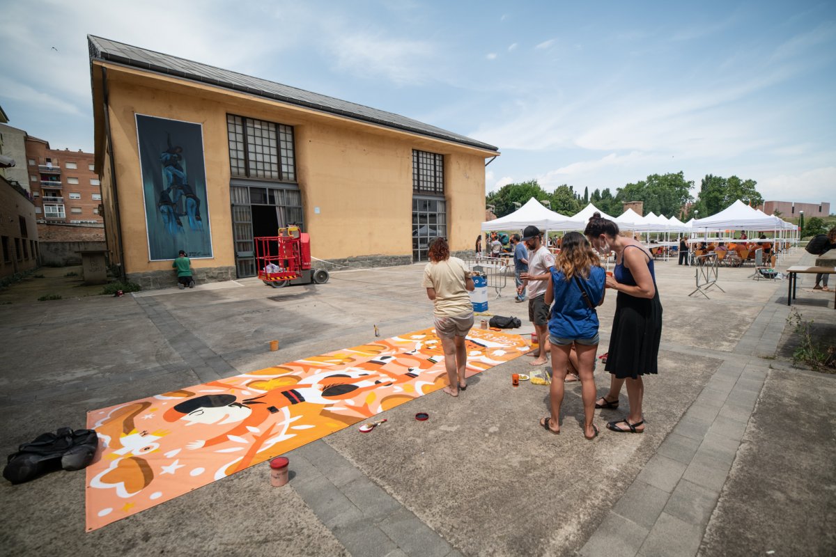 Aquest diumenge hauria tingut lloc la diada castellera de la festa major de Vic. I els Sagals d’Osona no volien deixar passar la data encara que no es poguessin aixecar les torres humanes, una de les activitats que més costarà de recuperar en la post-pandèmia. “Encara que fos metafòricament, els castells s’havien d’aixecar”, explicava diumenge Bernat Camps, el president de la colla osonenca. I com en tot el que passa aquests dies, la imaginació els va portar a una sortida: els castells que s’enlairarien serien grafits. Tres artistes o col·lectius –Kazzius, Miles i Kiwi Studio– van fer durant el matí tres murals al pati de La Central, que al migdia es van enlairar al so del toc de gralla que acompanya els castellers.