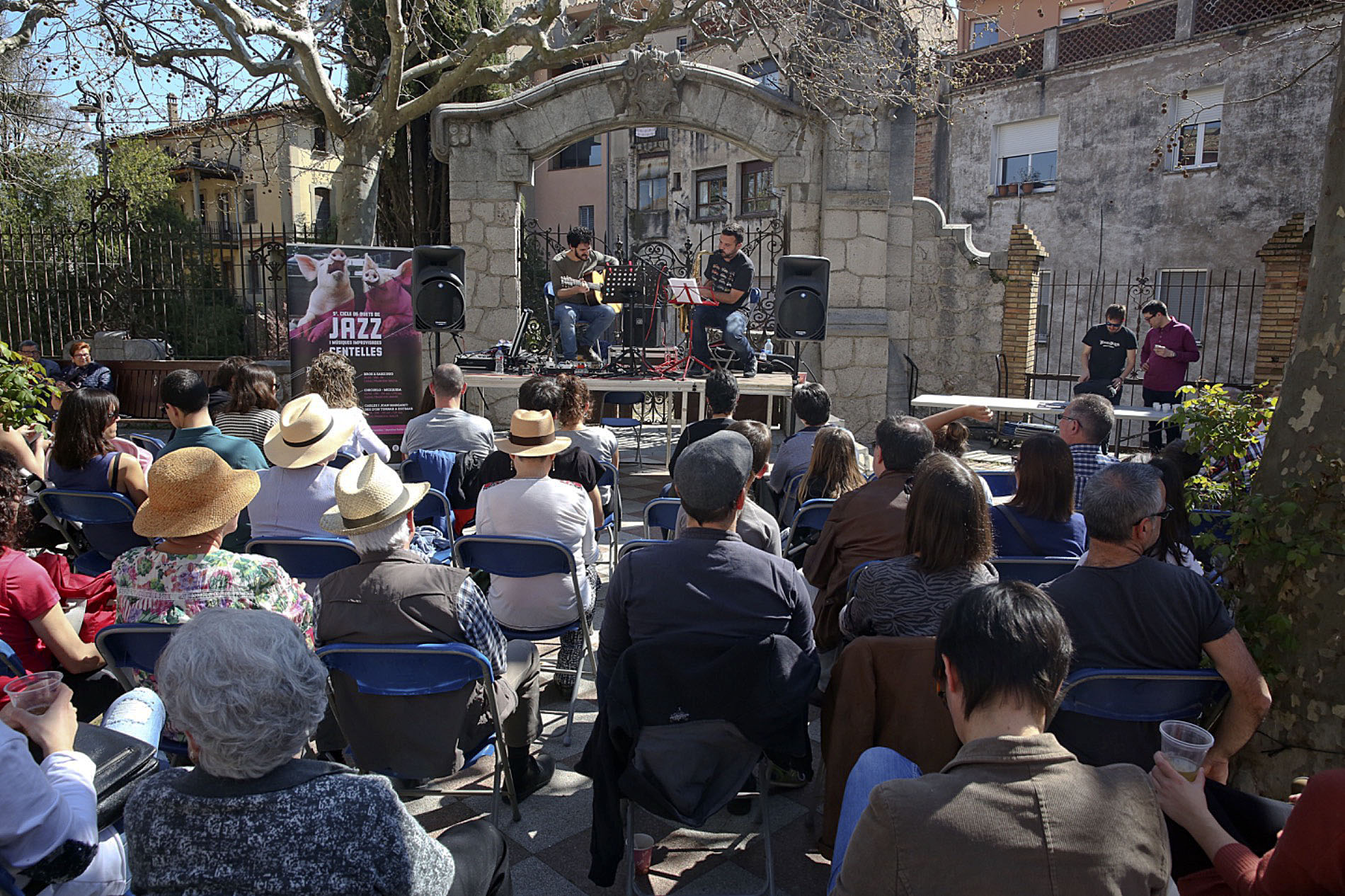 A la tarda, ja passant per taquilla, i al Casal Francesc Macià, va ser el torn de Dani Pérez & David Mengual Duet, guitarra i contrabaix, respectivament, que van oferir un concert que va fer honor al que deia el programa: “Un inventari de vivències musicals i personals, sense guió, partint de la confiança, el respecte i les ganes de compartir música”.