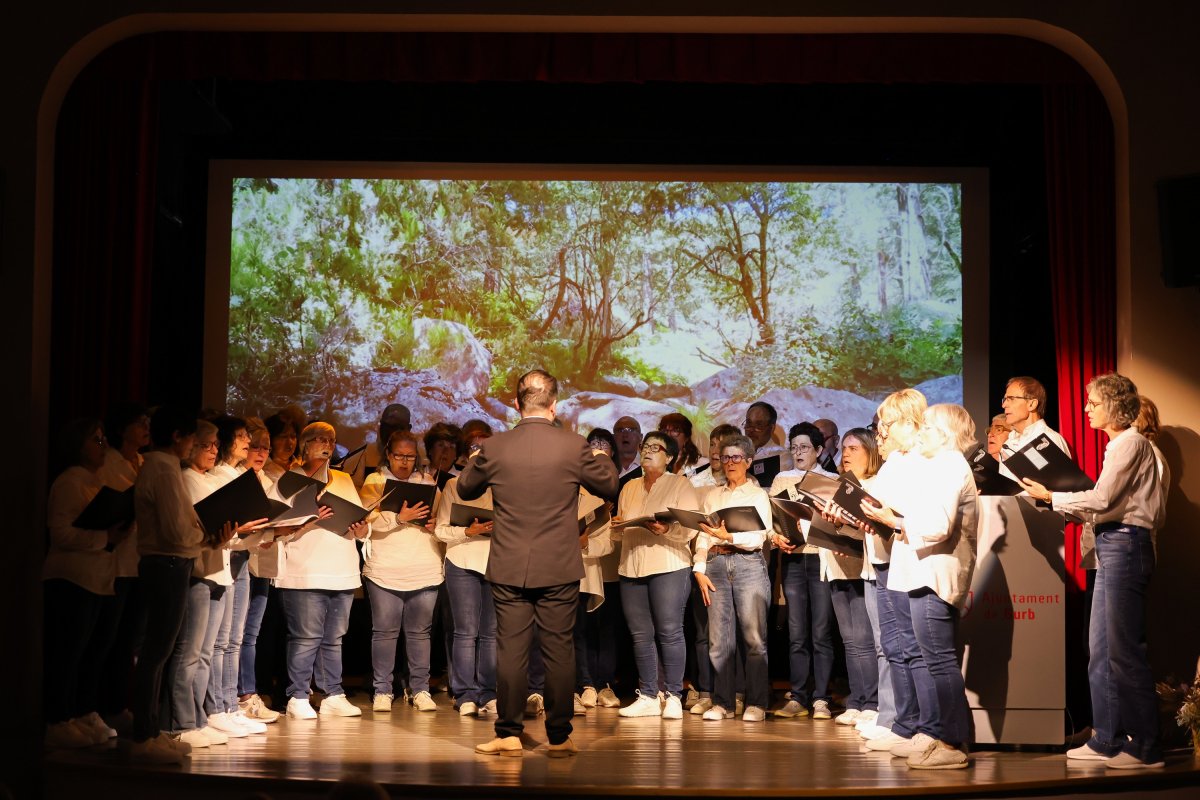 A la foto, l’actuació de les corals Cantanna de Vic i Vall de Ribes, que va precedir el lliurament. A la batuta, l’osonenc Bruno Nájera, que també és l’actual president de la Federació de Cors de Clavé.
