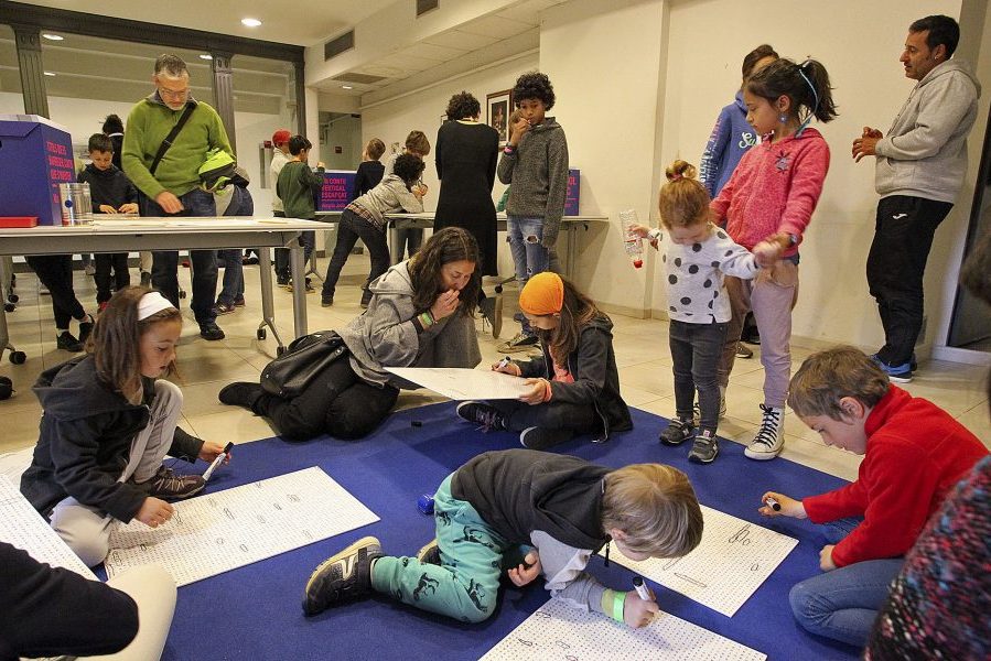 Els espais del Casino de Vic es convertien dissabte al matí en un entorn on experimentar amb la literatura. Petits i grans podien compartir diverses maneres d’acostar-se al món dels llibres, escoltant com sonen a partir d’una proposta del músic Gerard Valverde, explicant relats creuats seguint una tècnica japonesa mil·lenària o jugant a construir, literalment, històries. Tot plegat, en el marc de la part orientada a les famílies que proposa el FLIC i que suggereix, des de perspectives artístiques diferents, noves maneres d’apropar-se als llibres i a la literatura.