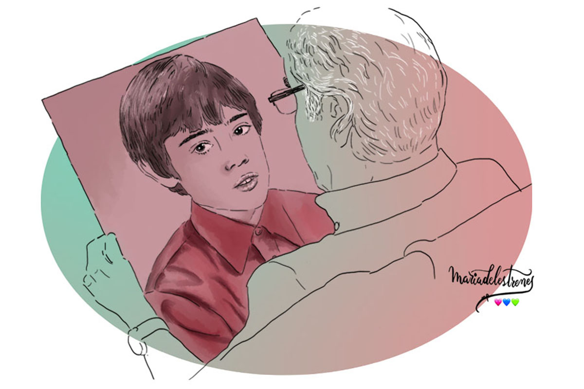 Un “SÍ!” enorme ha quedat atrapat a la meva gola de fusta, just sota aquell maleït últim botó. No sap com sortir-ne. És just aleshores quan, d’una forma tan al·lucinant com real, escolto la veu del nostre pare dient-me –potser dient-nos a tots dos– “Jo t’ajudo”. I ens ajuda. No sé com, però ho fa. El quadre del nen es queda sobre el sofà. Jo, el nen del quadre, en canvi, surto de l’habitació caminant. Veig la meva imatge reflectida al mirall del rebedor. Hi reconec de seguida aquella meva mirada trapella, de bitxo, sota el seu pentinat magre i nevat.