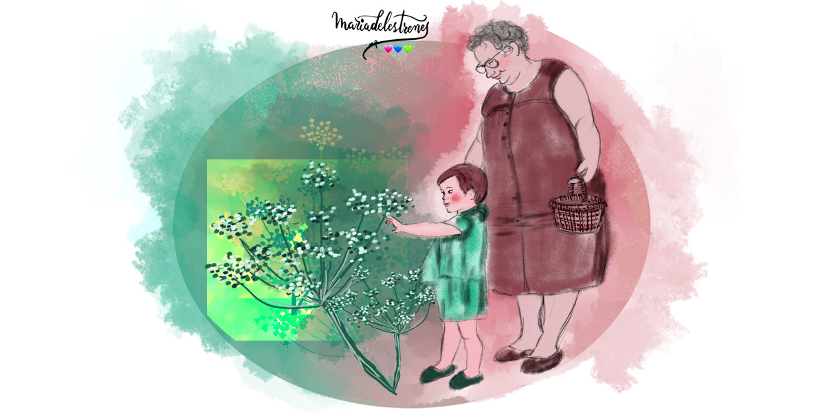 La Remei agafa la mà de l’àvia i sense dir-se res van cap al bosc de darrere casa a buscar fonoll, “una herba que els agrada molt”, com li va explicar quan tenia tan sols tres anys. La iaia Teresa agafa el bastó i li dona el cistell més petit. Caminen uns metres fins que troben el fonoll, ufanós, que creix pels camins dels marges. N’arrenquen un ramet cada una, així tindran l’excusa per tornar-hi l’endemà i passar una estona plegades. I soles.