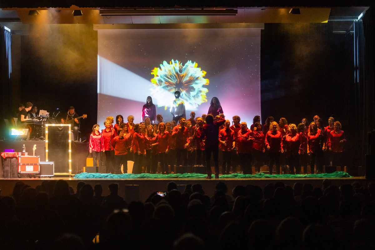 La posada en escena de ‘GospelPraise’, en el concert de preestrena que van oferir dissabte a Can Costa i Font, lloc habitual d’assaig del cor | ALBERT LLIMÓS
