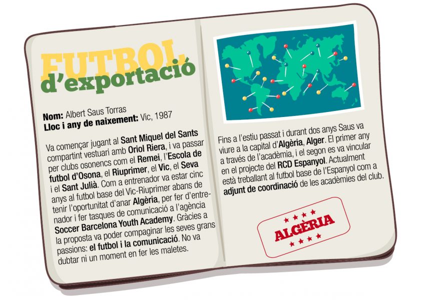 A Algèria, com en tants altres països en vies de desenvolupament, tenen molt oblidat el futbol formatiu. El vigatà Albert Saus ho ha viscut. “Per això les acadèmies estrangeres tenen èxit”, explica. A Algèria, des de la federació del país s’impulsa, sobretot, la primera divisió i la selecció nacional. A més, els empresaris i presidents tenen molta transcendència sobre els clubs. “Els presidents de futbol d’Algèria són els que intervenen en les decisions tàctiques o tècniques i les alineacions, sense tenir coneixements específics de futbol”. És un país que no té la cultura futbolística “de deixar treballar els professionals del sector”. En el seu cas el president creia una mica més en el futbol formatiu. “Jo vaig tenir sort que ens van deixar treballar bastant. No em van canviar la manera d’ensenyar”.