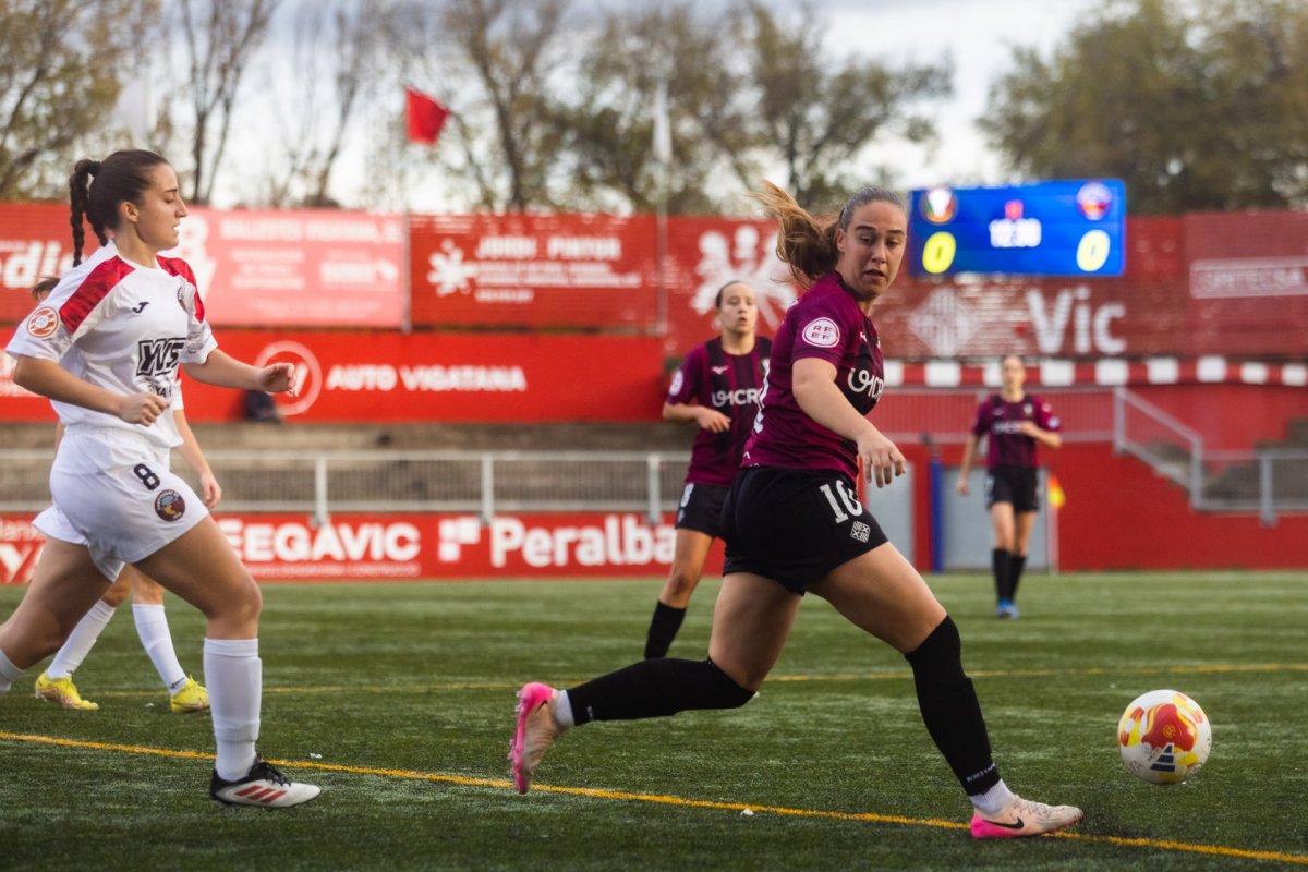 La primera part ha estat igualada i amb poques ocasions. Les jugadores de Jordi Codina han disposat de situacions a l’àrea rival, però ha estat un partit en què el Vic Riuprimer ha portat poc perill a l’àrea rival.