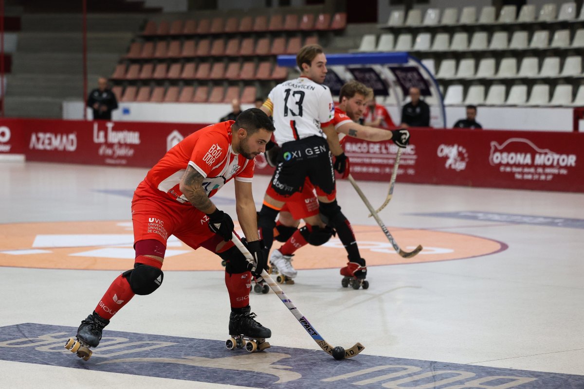 Lucas Vicen, capità dels vallesans, ha estavellat una bola al pal en un xut des de la frontal de l’àrea i Pablo Rodríguez també ha estat ben a prop de marcar en un mà a mà en el qual ha acabat enviant la bola sobre la porteria. Quedaven deu minuts i el Vic tenia el partit controlat i, tot i que no gaudia de grans ocasions, tampoc ha patit en defensa. Els darrers intents de l’enfrontament han estat un xut llunyà de Saladrigues i un colpeig potent de Parcerisas que ha desviat Cantador. A falta de tres minuts per a la conclusió, Rodríguez ha enviat un xut a l’escaire per retallar diferències en el marcador, però ja era massa tard, i els osonencs han sumat el seu quart triomf en quatre partits a l’Olímpic. El darrer partit de l’any que disputaran els vigatans serà el pròxim 13 de desembre a la pista del GEIEG.