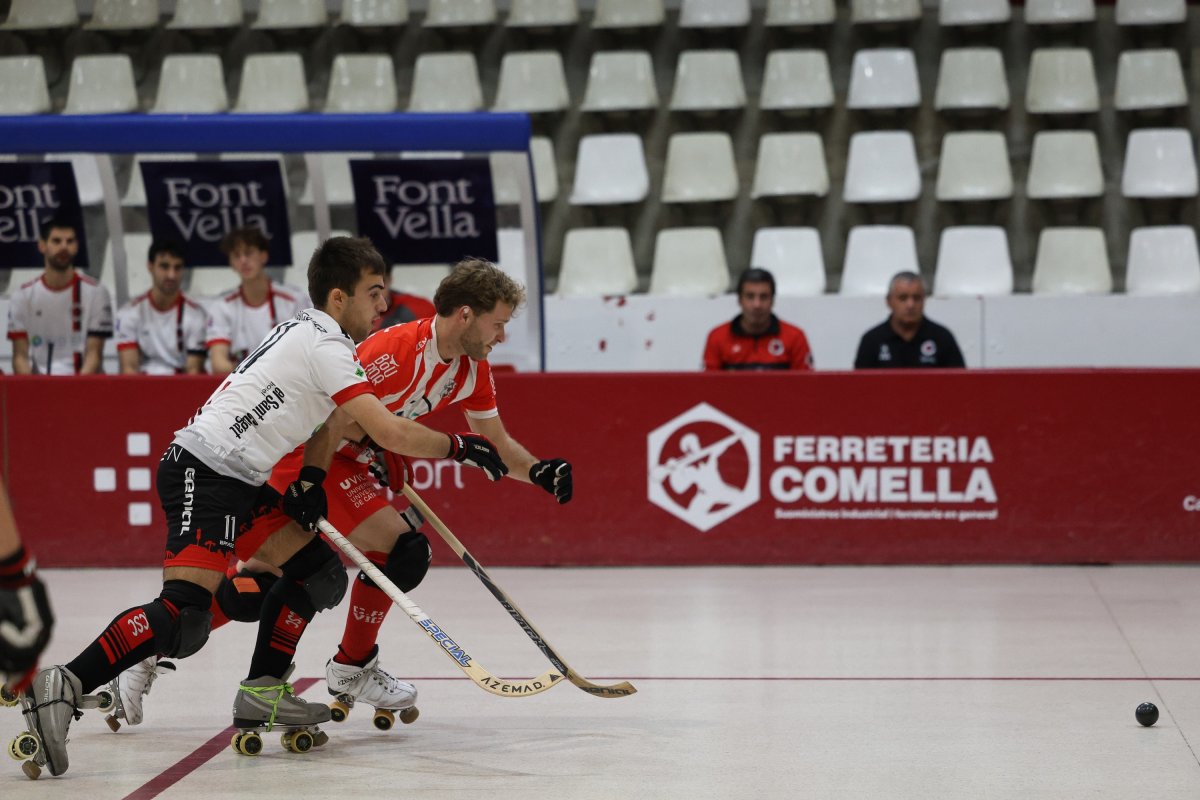 Aquesta setmana els vermell-i-blancs tampoc han pogut comptar amb Uri Ramírez –s’ha trencat un dit de la mà i estarà un mes de baixa aproximadament–, el capità, però han començat molt intensos i han dominat en els primers deu minuts, un període en el qual han anotat tres gols. Canal ha obert la llauna després de caçar el refús d’un xut d’Arnau Saladrigues i enviar la bola al fons de la xarxa. Xevi Puigbí ha evitat l’empat de Roquet en una falta directa i Parcerisas ha transformat el segon amb un colpeig llunyà. El cos tècnic visitant ha demanat el primer temps mort del partit, i quan s’ha reprès el joc, els vigatans han fet pujar el 3 a 0 al marcador: Saladrigues ha dirigit un contraatac i ha assistit Sánchez, que no ha perdonat.
