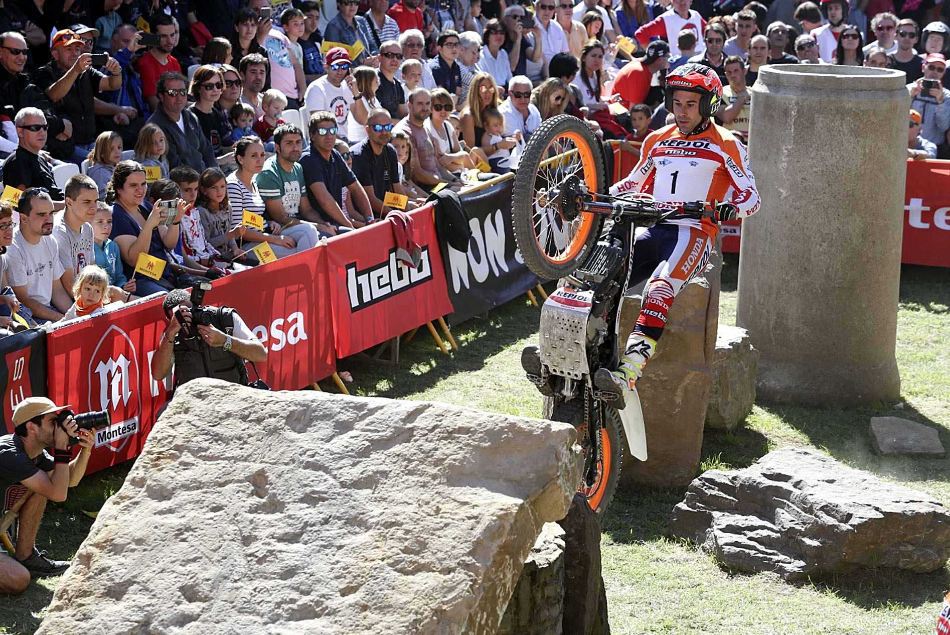 Tona ha acollit aquest diumenge una nova edició de la Montesada, la festa de fi de temporada de trial i que, a més dels fans de la històrica marca catalana, reuneix els principals pilots del mundial de l’equip Montesa-Honda. Un dels moments més espectaculars és quan pilots com el campió del món Toni Bou, Takahisa Fujinami, Marc Freixa o Francesc Moret s’enfronten a la denominada zona impossible, una paret pràcticament vertical que els més experimentats ja superen amb nota, com es pot veure en el vídeo.
