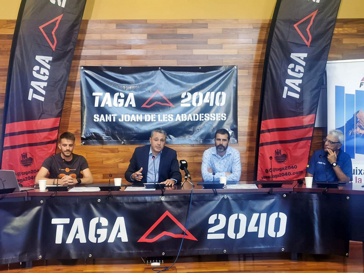 La 23a edició de la Cursa del Taga 2040 es disputarà aquest diumenge a Sant Joan de les Abadesses. Enguany, la prova serà el Campionat de Catalunya de curses per muntanya i puntuable per a la Copa Catalana de la FEEC de curses per muntanya. La competició tindrà tres recorreguts per a tots els nivells. El recorregut llarg (28 quilòmetres i 2.000 metres de desnivell positiu) serà el traçat clàssic i més exigent. Serà l’única prova que pujarà al cim del Taga, però els corredors també passaran pel Puig Estela i Sant Amand. La cursa intermèdia de Can Camps té 15 quilòmetres de distància (900 metres) i la de Coll d’Art, 9 quilòmetres (500 metres). Dijous de la setmana passada se’n va fer una roda de premsa de presentació a la sala de plens de l’Ajuntament santjoaní amb la presència de l’alcalde, Ramon Roqué; el president del Consell Comarcal del Ripollès, Joaquim Colomer; el director de comunicació de la FEEC, Quim Pons; el coordinador de curses per muntanya i esquí de muntanya de la FEEC, Ramon Reig, i el mateix Ramoneda.
