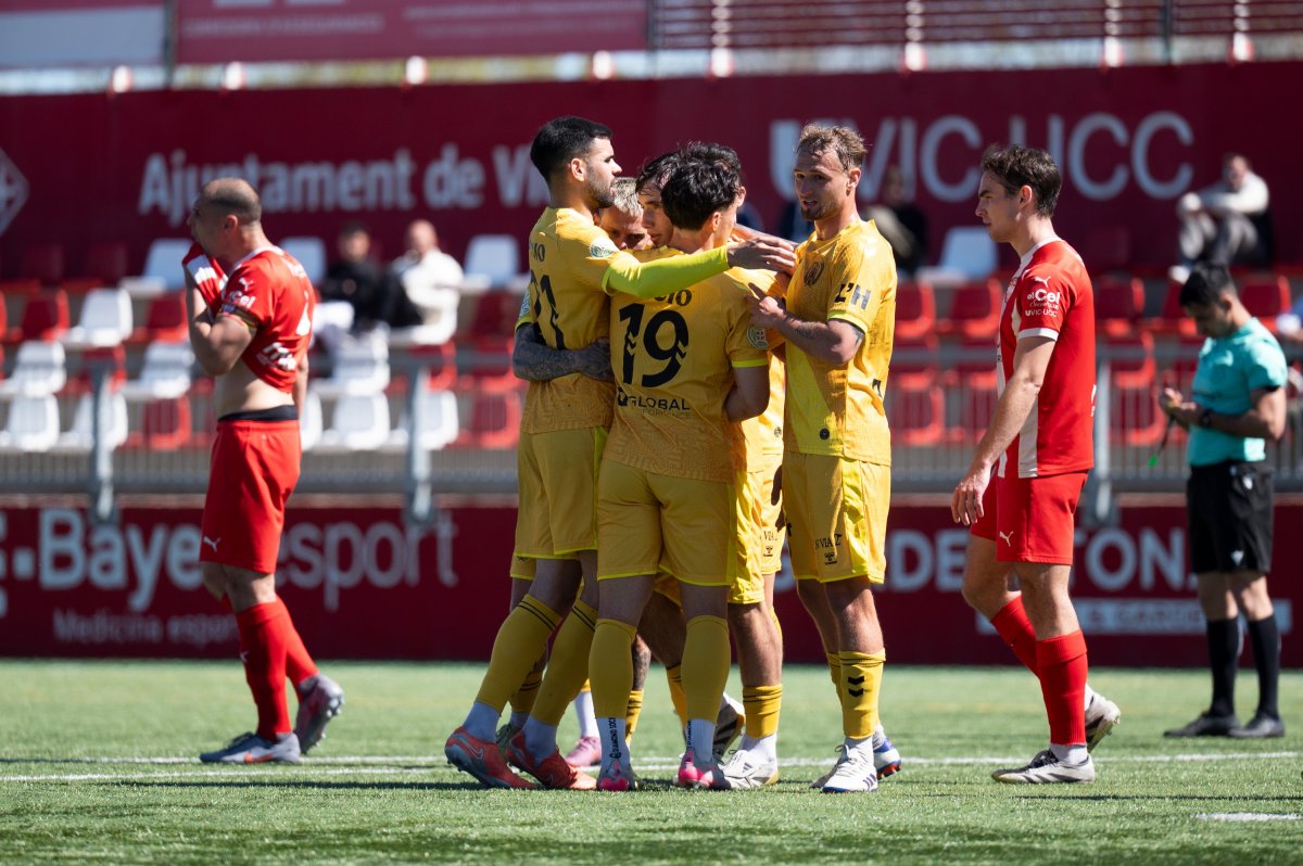 El Vic ha sortit amb un altre ritme a la segona part. Chema Moreno ha tingut diverses arribades per banda dreta que no han trobat rematador, però els homes de Carrascal estaven millor i el partit s’ha igualat. La sentència ha arribat al minut 59, quan Lobo ha intentat protegir una pilota perquè surtís per la línia de fons, però Sergio li ha pispat i ha assistit a Joel que ha marcat el 0-2. El Vic ha notat el cop, sabia que el partit s’havia posat difícil i, quan poc després el mateix Joel feia el 0-3, uns i altres han donat el matx per liquidat.