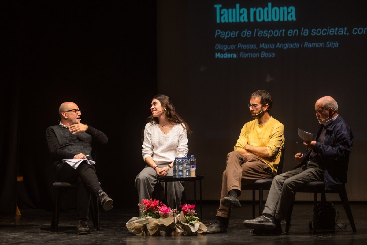 A la foto, Anglada fa uns dies en una taula rodona a Sant Hipòlit, on va defensar els valors de l’esport en l’educació.