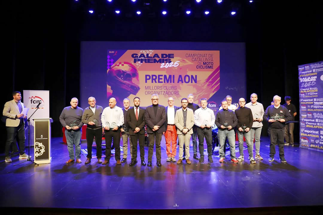 Entre ells hi havia el president de la FCM, Tato Prat, que va posar en valor els èxits internacionals dels pilots catalans durant la temporada 2025. Va felicitar a tots els premiats i els motoclubs per la seva tasca i va encoratjar els pilots a continuar treballant i competint al màxim nivell.