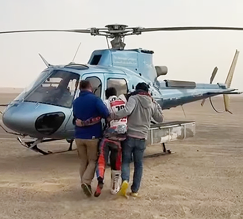 El pilot de Taradell Arnau Lledó (Pedregà Team) ha hagut d’abandonar el Dakar aquest dimecres al matí després de patir una caiguda que li ha afectat el turmell i per la que ha hagut de ser evacuat en helicòpter.