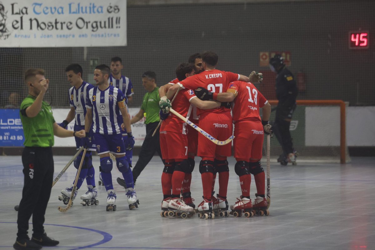 La tristesa de no poder continuar jugant a l’Oliveras de la Riva s’ha transformat en una gran satisfacció després que els blanc-i-blaus hagin remuntat per vèncer per 4 a 3 al seu màxim rival, en partit de la Frit Ravich Lliga Catalana d’hoquei patins.