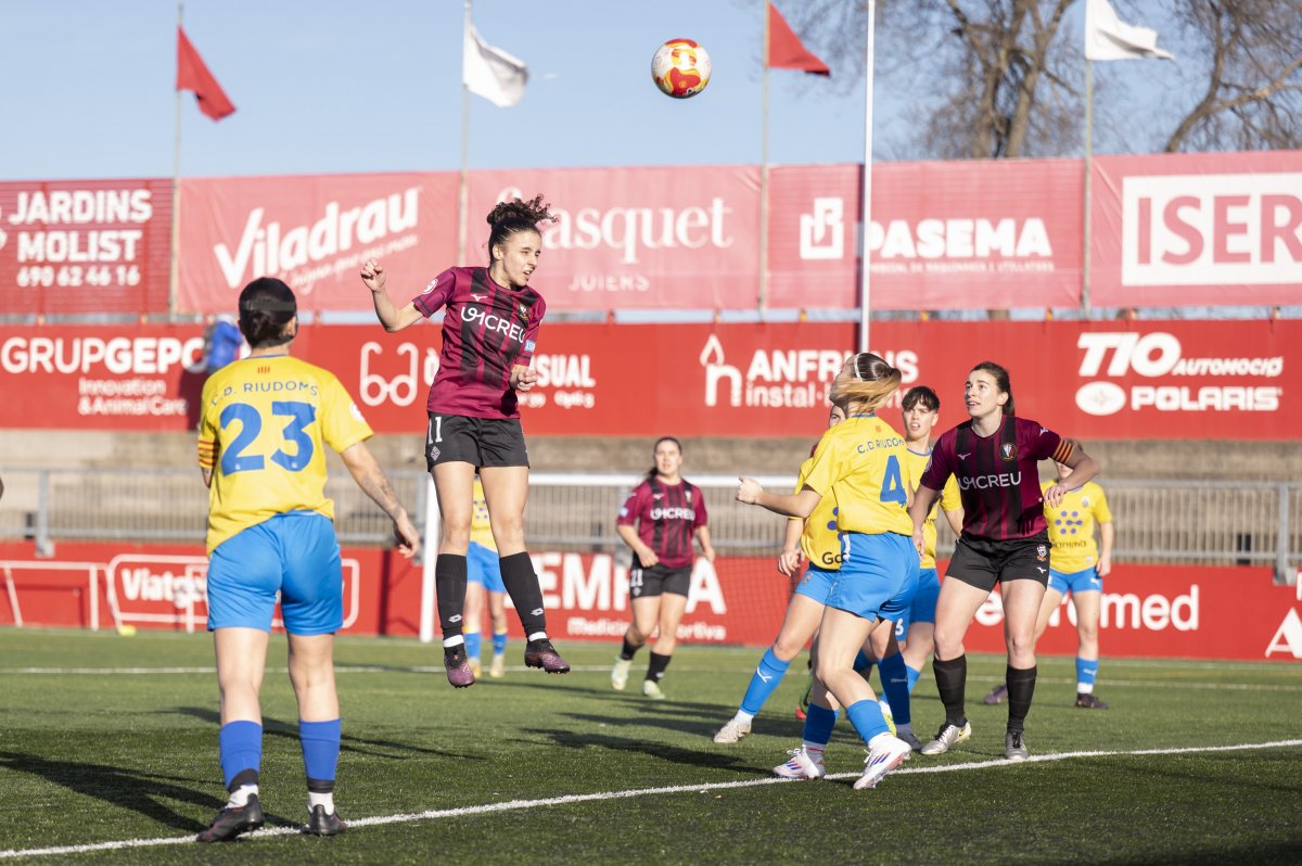 Poc després, Pallès va filtrar una gran passada a l’espai a l’esquena de la defensa per a Cervera, que va posar una centrada perillosa, però la rematada de Joana Clota va tornar a sortir desviada. El Vic Riuprimer va continuar insistint i generant perill també a pilota aturada, amb una falta que va marxar fora per ben poc. El domini va tenir premi al minut 35, quan Sampedro va connectar un gran xut des de fora l’àrea per avançar el Vic Riuprimer. Després del gol, les jugadores van córrer cap a la banqueta per agafar la samarreta d’Alba Valor, lesionada de creuats, i dedicar-li el gol en un emotiu gest de suport i unitat de l’equip. Poc abans del descans, va arribar el segon gol de les locals, obra de Pallès, que va definir amb un xut col·locat.