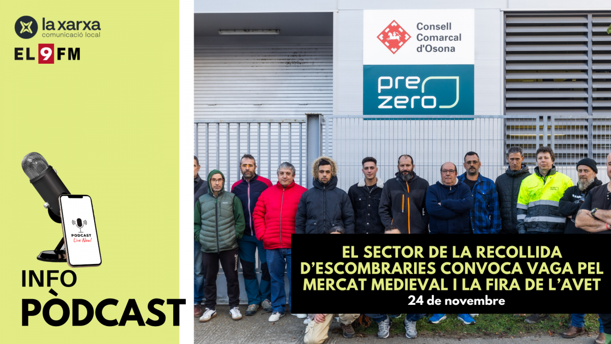 Els treballadors de recollida d’escombraries d’Osona han convocat una vaga els dies del Mercat Medieval i la Fira de l’Avet. Es farà als 37 municipis d’Osona i el Lluçanès que tenen el servei delegat al Consell Comarcal d’Osona i durarà una setmana sencera: del 5 al 12 de desembre. N’expliquem tots els detalls a l’Infopòdcast d’EL 9 NOU.