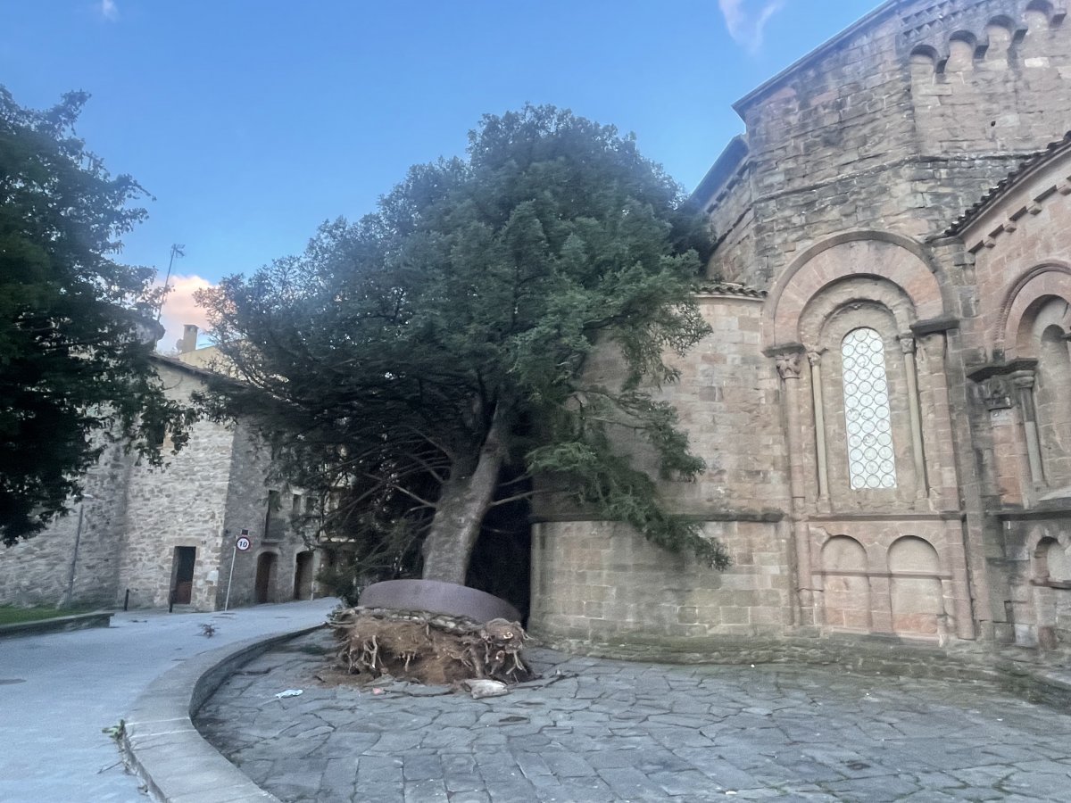 El temporal de vent fa caure l’emblemàtic avet del monestir de Sant Joan