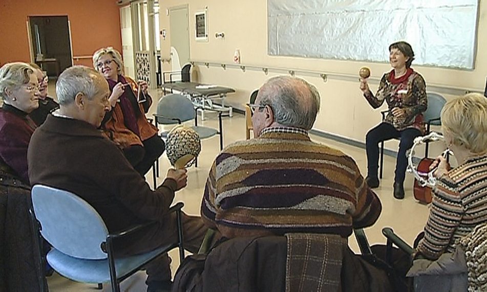 És per aquest motiu que, cada dimarts, cinc parelles formades per malalts i el seu cuidador principal es troben per compartir una estona. L’activitat la dirigeix la musicoterapeuta Montserrat Vernet, que explica que la finalitat de les sessions “és bàsicament socioemocional”. Apunta, també, que “hi ha estudis que demostren com les àrees del cervell que processen una música coneguda i la música lligada a records emocionals són les que més tard es deterioren”, la qual cosa dóna una idea prou significativa dels beneficis terapèutics que pot aportar la música.