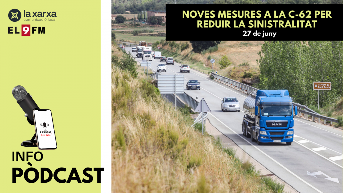 Després d’un mes de juny en què s’ha posat el focus en la seguretat de la C-62, arran de dues morts en accidents de trànsit els últims mesos, la Generalitat prendrà mesures per fer front a la sinistralitat. Volen instal·lar a la carretera franges que mesuren el nombre de vehicles diaris, senyalització que alerti de punts conflictius o la rugositat a les bandes. A més, sumaran la carretera al programa 2+1. Ho expliquem a l’Infopòdcast d’EL 9 NOU.