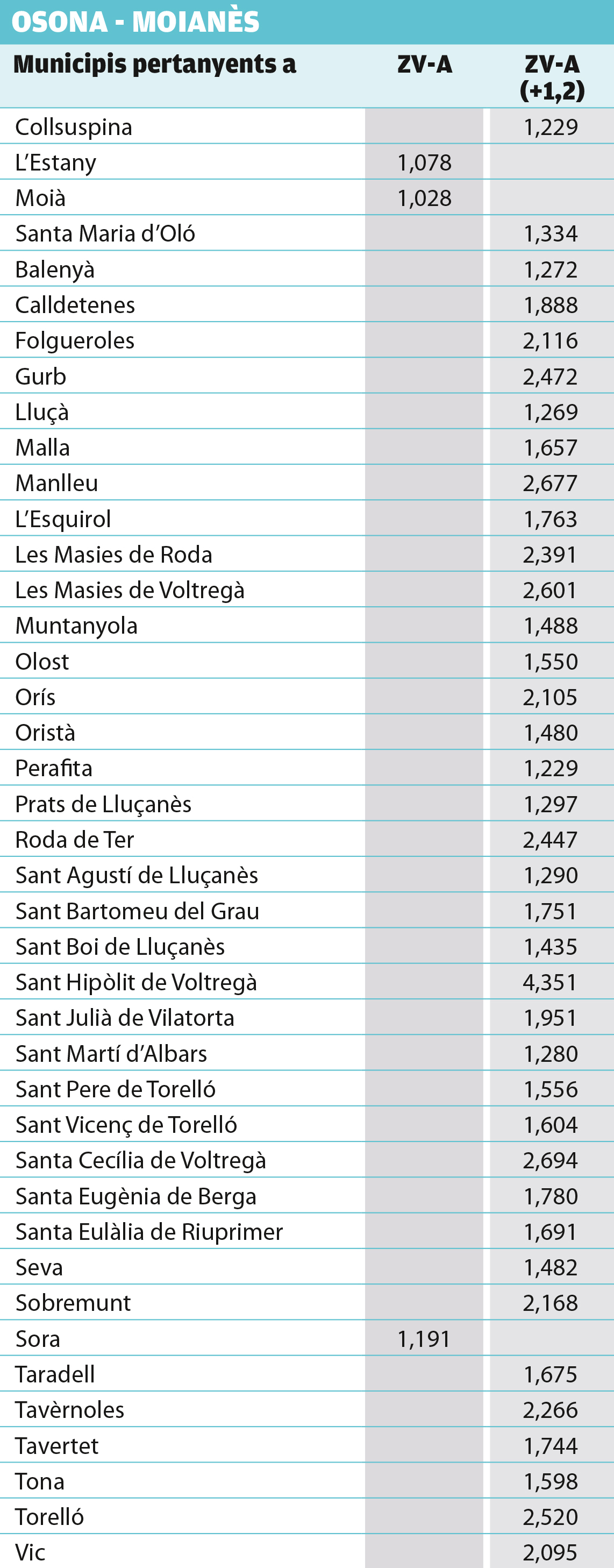 Tal com s’havia anunciat, el nou decret de dejeccions ramaderes aplicarà una moratòria per posar bestiar a les zones vulnerables que tenen més de l’1,2 d’ICR (vegeu requadre). Aquest índex és més alt a 36 municipis d’Osona i a 1 del Moianès. En total, 37 dels 66 que tenen aquesta categoria a tot Catalunya. Altres municipis d’Osona estan també en zona vulnerable A, tot i que amb un índex per sota de l’1,2, i n’hi ha alguns que no estan en zona vulnerable, com tampoc està catalogat com a tal el Ripollès, una comarca que es considera zona de muntanya pel que fa a la gestió de fems. El poble amb un ICR més alt és Sant Hipòlit de Voltregà, però això es deu al fet que és un municipi amb molt poques terres fertilitzables i poques granges. El valor augmenta pels municipis contigus, que també formen part del càlcul. Més enllà d’aquesta excepcionalitat, els municipis amb l’índex més alt són Santa Cecília de Voltregà, Manlleu, les Masies de Voltregà i Gurb. De fet, segons les darreres dades la capacitat, només, porcina d’Osona és de més d’un milió de caps de bestiar (vegeu EL 9 NOU del 30 de juliol de 2018).