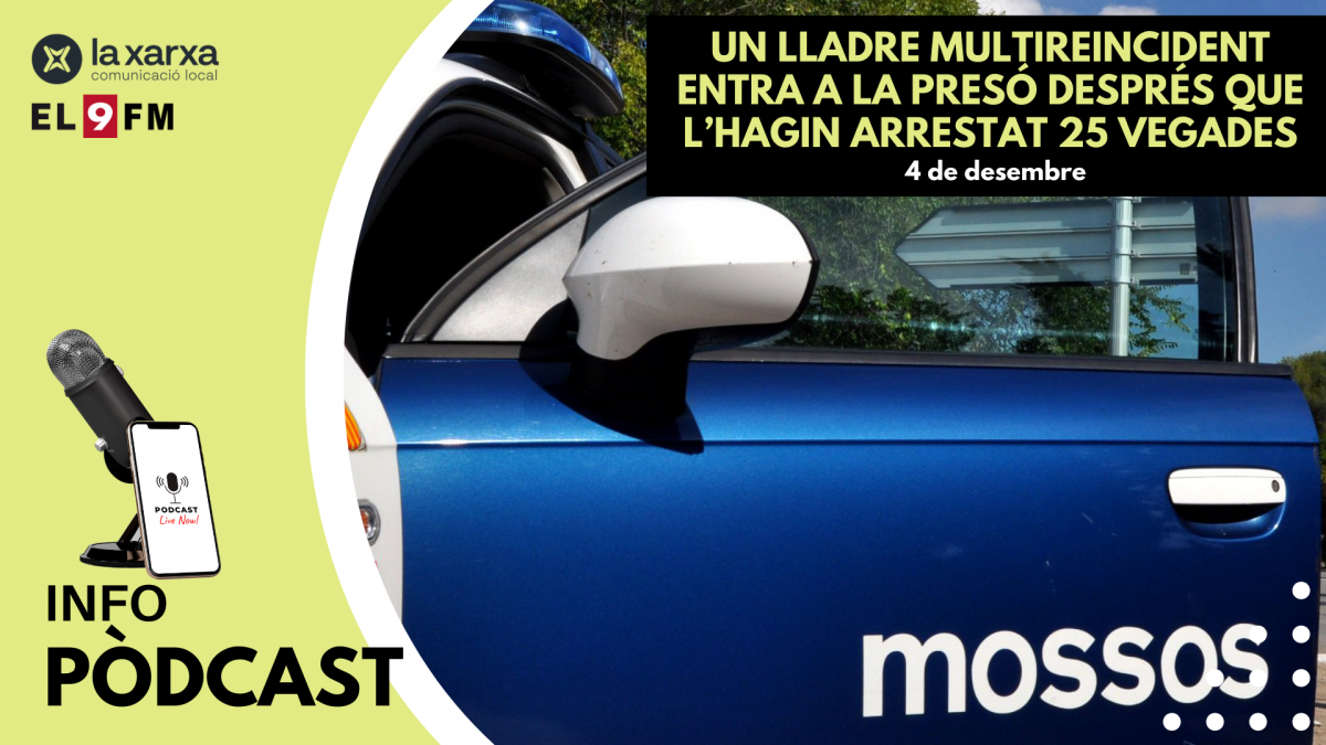 Els Mossos d’Esquadra i Guàrdia Urbana de Vic han detingut un lladre multireincident que havia estat arrestat fins a 25 vegades i acumulava una llarga llista de delictes contra el patrimoni. Principalment, eren furts, robatoris amb força i robatoris violents, majoritàriament comesos a Vic. Ho expliquem amb tots els detalls a l’Infopòdcast d’EL 9 NOU.