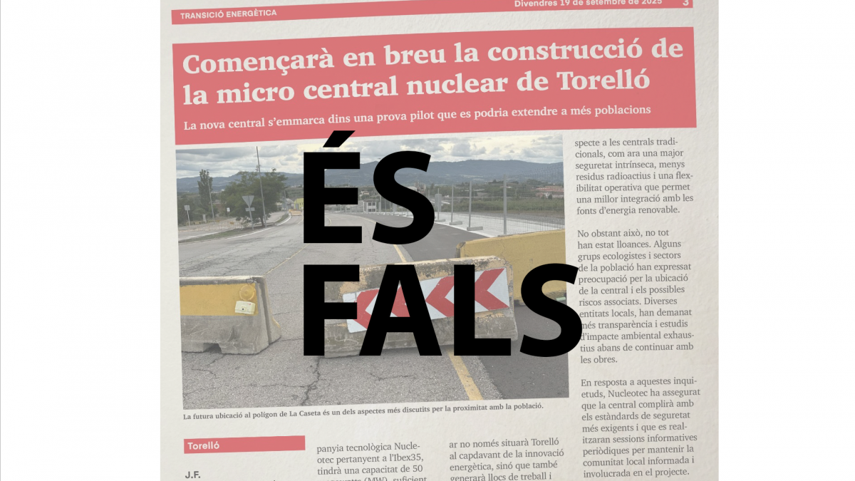 En una societat hiperconnectada cal estar alerta amb les informacions que rebem i acabem reenviant. Aquesta setmana, per exemple, van començar a circular per grups de WhatsApp de la Vall del Ges unes suposades notícies que imitaven la maquetació d’EL 9 NOU i anunciaven la construcció imminent d’una microcentral nuclear a Torelló.