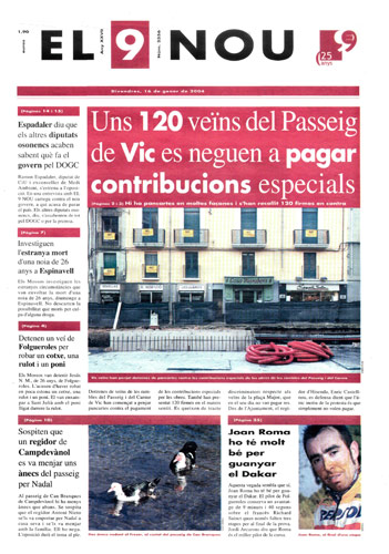 20040116 20040116 | El 9 Nou 16/01/2004 Notícies relacionades LA PREGUNTA Veu bé que el president dels bisbes espanyols opini sobre política? Sí No En aquesta enquesta han votat 297 persones. Vota Les + vistes Set detinguts i una vintena de denúncies en un dispositiu Kanpai contra la multireincidència a Vic i Manlleu Fan malbé el ninot de l'escola Joan Maragall de Ripoll Obriran un centre privat de diagnòstic per la imatge a Vic amb una inversió de 6 milions d'euros La febre per trobar el número de loteria de l'anunci d'un torró ha arribat fins a Tona El personal sanitari del CAP del Remei de Vic fa un pessebre vivent solidari Girbau celebra un dinar de jubilats a les portes de Nadal Els germans Pujol de la Granja Armengol, els nous 'influencers' de la vida a pagès La Generalitat confirma el futur Palau de Justícia a l’Era d’en Sellés de Vic Els pobles osonencs que pertanyen a Girona no es plantegen demanar un canvi de província Refredat, grip i covid: símptomes semblants però malalties diferents