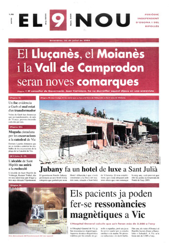 20040723 20040723 | El 9 Nou 23/07/2004 Notícies relacionades LA PREGUNTA Veu bé que el president dels bisbes espanyols opini sobre política? Sí No En aquesta enquesta han votat 288 persones. Vota Les + vistes Set detinguts i una vintena de denúncies en un dispositiu Kanpai contra la multireincidència a Vic i Manlleu La febre per trobar el número de loteria de l'anunci d'un torró ha arribat fins a Tona Fan malbé el ninot de l'escola Joan Maragall de Ripoll Obriran un centre privat de diagnòstic per la imatge a Vic amb una inversió de 6 milions d'euros Girbau celebra un dinar de jubilats a les portes de Nadal El personal sanitari del CAP del Remei de Vic fa un pessebre vivent solidari Osona Ripolles Els pobles osonencs que pertanyen a Girona no es plantegen demanar un canvi de província La Generalitat confirma el futur Palau de Justícia a l’Era d’en Sellés de Vic Aliança Catalana aconsegueix a última hora els suports per salvar 2,7 milions d'Europa per la nau del Pla de Ripoll