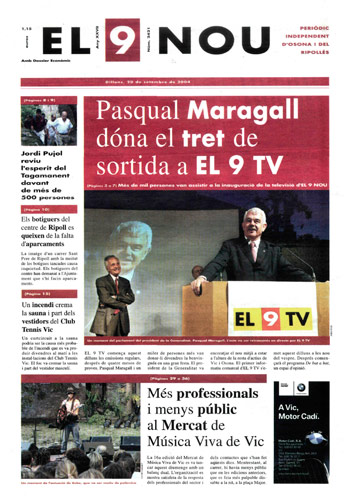 20040920 20040920 | El 9 Nou 20/09/2004 Notícies relacionades LA PREGUNTA Veu bé que el president dels bisbes espanyols opini sobre política? Sí No En aquesta enquesta han votat 288 persones. Vota Les + vistes Set detinguts i una vintena de denúncies en un dispositiu Kanpai contra la multireincidència a Vic i Manlleu La febre per trobar el número de loteria de l'anunci d'un torró ha arribat fins a Tona Fan malbé el ninot de l'escola Joan Maragall de Ripoll Obriran un centre privat de diagnòstic per la imatge a Vic amb una inversió de 6 milions d'euros Girbau celebra un dinar de jubilats a les portes de Nadal El personal sanitari del CAP del Remei de Vic fa un pessebre vivent solidari Osona Ripolles Els pobles osonencs que pertanyen a Girona no es plantegen demanar un canvi de província La Generalitat confirma el futur Palau de Justícia a l’Era d’en Sellés de Vic Aliança Catalana aconsegueix a última hora els suports per salvar 2,7 milions d'Europa per la nau del Pla de Ripoll
