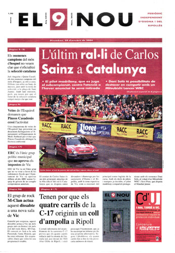 20041029 20041029 | El 9 Nou 29/10/2004 Notícies relacionades LA PREGUNTA Veu bé que el president dels bisbes espanyols opini sobre política? Sí No En aquesta enquesta han votat 297 persones. Vota Les + vistes Set detinguts i una vintena de denúncies en un dispositiu Kanpai contra la multireincidència a Vic i Manlleu Fan malbé el ninot de l'escola Joan Maragall de Ripoll Obriran un centre privat de diagnòstic per la imatge a Vic amb una inversió de 6 milions d'euros La febre per trobar el número de loteria de l'anunci d'un torró ha arribat fins a Tona El personal sanitari del CAP del Remei de Vic fa un pessebre vivent solidari Girbau celebra un dinar de jubilats a les portes de Nadal Els germans Pujol de la Granja Armengol, els nous 'influencers' de la vida a pagès La Generalitat confirma el futur Palau de Justícia a l’Era d’en Sellés de Vic Els pobles osonencs que pertanyen a Girona no es plantegen demanar un canvi de província Refredat, grip i covid: símptomes semblants però malalties diferents