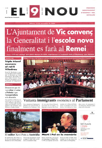 20041115 20041115 | El 9 Nou 15/11/2004 Notícies relacionades LA PREGUNTA Veu bé que el president dels bisbes espanyols opini sobre política? Sí No En aquesta enquesta han votat 297 persones. Vota Les + vistes Set detinguts i una vintena de denúncies en un dispositiu Kanpai contra la multireincidència a Vic i Manlleu Fan malbé el ninot de l'escola Joan Maragall de Ripoll Obriran un centre privat de diagnòstic per la imatge a Vic amb una inversió de 6 milions d'euros La febre per trobar el número de loteria de l'anunci d'un torró ha arribat fins a Tona El personal sanitari del CAP del Remei de Vic fa un pessebre vivent solidari Girbau celebra un dinar de jubilats a les portes de Nadal Els germans Pujol de la Granja Armengol, els nous 'influencers' de la vida a pagès La Generalitat confirma el futur Palau de Justícia a l’Era d’en Sellés de Vic Els pobles osonencs que pertanyen a Girona no es plantegen demanar un canvi de província Refredat, grip i covid: símptomes semblants però malalties diferents