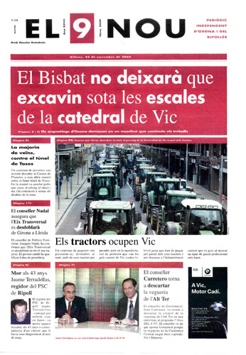 20041122 20041122 | El 9 Nou 22/11/2004 Notícies relacionades LA PREGUNTA Veu bé que el president dels bisbes espanyols opini sobre política? Sí No En aquesta enquesta han votat 297 persones. Vota Les + vistes Set detinguts i una vintena de denúncies en un dispositiu Kanpai contra la multireincidència a Vic i Manlleu Fan malbé el ninot de l'escola Joan Maragall de Ripoll Obriran un centre privat de diagnòstic per la imatge a Vic amb una inversió de 6 milions d'euros La febre per trobar el número de loteria de l'anunci d'un torró ha arribat fins a Tona El personal sanitari del CAP del Remei de Vic fa un pessebre vivent solidari Girbau celebra un dinar de jubilats a les portes de Nadal Els germans Pujol de la Granja Armengol, els nous 'influencers' de la vida a pagès La Generalitat confirma el futur Palau de Justícia a l’Era d’en Sellés de Vic Els pobles osonencs que pertanyen a Girona no es plantegen demanar un canvi de província Refredat, grip i covid: símptomes semblants però malalties diferents