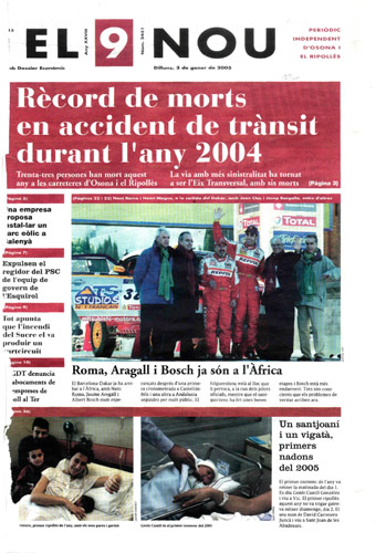 20050103 20050103 | El 9 Nou 03/01/2005 Notícies relacionades LA PREGUNTA Veu bé que el president dels bisbes espanyols opini sobre política? Sí No En aquesta enquesta han votat 245 persones. Vota Les + vistes Set detinguts i una vintena de denúncies en un dispositiu Kanpai contra la multireincidència a Vic i Manlleu La febre per trobar el número de loteria de l'anunci d'un torró ha arribat fins a Tona Fan malbé el ninot de l'escola Joan Maragall de Ripoll Obriran un centre privat de diagnòstic per la imatge a Vic amb una inversió de 6 milions d'euros Girbau celebra un dinar de jubilats a les portes de Nadal El personal sanitari del CAP del Remei de Vic fa un pessebre vivent solidari Osona Ripolles Els pobles osonencs que pertanyen a Girona no es plantegen demanar un canvi de província La Generalitat confirma el futur Palau de Justícia a l’Era d’en Sellés de Vic Aliança Catalana aconsegueix a última hora els suports per salvar 2,7 milions d'Europa per la nau del Pla de Ripoll
