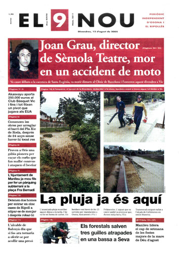 20050812 20050812 | El 9 Nou 12/08/2005 Notícies relacionades LA PREGUNTA Veu bé que el president dels bisbes espanyols opini sobre política? Sí No En aquesta enquesta han votat 291 persones. Vota Les + vistes Set detinguts i una vintena de denúncies en un dispositiu Kanpai contra la multireincidència a Vic i Manlleu La febre per trobar el número de loteria de l'anunci d'un torró ha arribat fins a Tona Fan malbé el ninot de l'escola Joan Maragall de Ripoll Obriran un centre privat de diagnòstic per la imatge a Vic amb una inversió de 6 milions d'euros Girbau celebra un dinar de jubilats a les portes de Nadal El personal sanitari del CAP del Remei de Vic fa un pessebre vivent solidari Osona Ripolles Els pobles osonencs que pertanyen a Girona no es plantegen demanar un canvi de província La Generalitat confirma el futur Palau de Justícia a l’Era d’en Sellés de Vic Aliança Catalana aconsegueix a última hora els suports per salvar 2,7 milions d'Europa per la nau del Pla de Ripoll