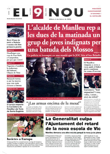20060206 20060206 | El 9 Nou 06/02/2006 Notícies relacionades LA PREGUNTA Veu bé que el president dels bisbes espanyols opini sobre política? Sí No En aquesta enquesta han votat 143 persones. Vota Les + vistes Set detinguts i una vintena de denúncies en un dispositiu Kanpai contra la multireincidència a Vic i Manlleu La febre per trobar el número de loteria de l'anunci d'un torró ha arribat fins a Tona Fan malbé el ninot de l'escola Joan Maragall de Ripoll La Rosada de Prats de Lluçanès obre portes a una nova manera de viure i envellir al món rural Tres persones intoxicades per monòxid de carboni als Hostalets de Balenyà Girbau celebra un dinar de jubilats a les portes de Nadal Les millors imatges del Mercat Medieval de Vic Osona Ripolles S’encén un cotxe a l’Eix Transversal, a Muntanyola “Portem 22 mesos queixant-nos dels paons i no ens fan cas”
