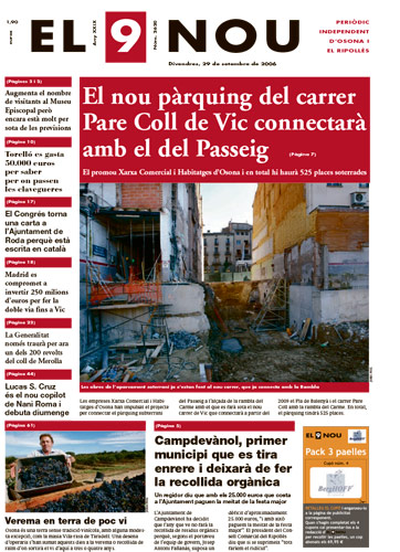 20060929 20060929 | El 9 Nou 29/09/2006 Notícies relacionades LA PREGUNTA Està d’acord amb la posició del govern espanyol sobre la guerra a l’Iran? Sí No En aquesta enquesta han votat 604 persones. Vota Les + vistes Dues botigues d'un mateix joier pateixen dos atracaments a Vic en menys de quinze dies Condueix sense carnet i té un accident a la carretera de Taradell a Santa Eugènia La N-260 continua tallada fins dilluns "com a mínim" per l'esllavissada a Sant Joan Dos incendis en uns baixos de Vic en poca estona i a 500 metres de distància Denuncien un conductor a la C-17 a Tona perquè portava el gos traient el cap per la finestra Què és aquest color verd del marge del riu Méder? Troben sense vida al Collsacabra un home que estava en recerca des del matí Localitzen un excursionista perdut al Collsacabra La N-260 a Sant Joan obre un carril després de l'esllavissada de divendres L'Ajuntament de Torelló talla una connexió il·legal d'aigua en un habitatge ocupat