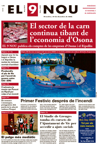 20061229 20061229 | El 9 Nou 29/12/2006 Notícies relacionades LA PREGUNTA Veu bé que el president dels bisbes espanyols opini sobre política? Sí No En aquesta enquesta han votat 133 persones. Vota Les + vistes Les millors imatges del Mercat Medieval de Vic La febre per trobar el número de loteria de l'anunci d'un torró ha arribat fins a Tona Tres persones intoxicades per monòxid de carboni als Hostalets de Balenyà Set detinguts i una vintena de denúncies en un dispositiu Kanpai contra la multireincidència a Vic i Manlleu Febre pel dècim que surt a l’anunci del torró La Rosada de Prats de Lluçanès obre portes a una nova manera de viure i envellir al món rural Girbau celebra un dinar de jubilats a les portes de Nadal “Portem 22 mesos queixant-nos dels paons i no ens fan cas” El veí de Barcelona investigat per un terreny a Manlleu evita declarar Salvador Illa visita Espinelves i Folgueroles