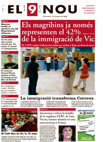 20070831 20070831 | El 9 Nou 31/08/2007 Notícies relacionades LA PREGUNTA Està d’acord amb la posició del govern espanyol sobre la guerra a l’Iran? Sí No En aquesta enquesta han votat 564 persones. Vota Les + vistes La N-260 continua tallada fins dilluns "com a mínim" per l'esllavissada a Sant Joan Dues botigues d'un mateix joier pateixen dos atracaments a Vic en menys de quinze dies Condueix sense carnet i té un accident a la carretera de Taradell a Santa Eugènia Dos incendis en uns baixos de Vic en poca estona i a 500 metres de distància Què és aquest color verd del marge del riu Méder? Troben sense vida al Collsacabra un home que estava en recerca des del matí Vic tanca un grup d’I3 a l’escola La Sínia i Manlleu, al Puig-Agut Mor una dona en caure des d'un vuitè pis a Vic Detingut per una agressió sexual a Sant Joan de les Abadesses Alerta pels cabals dels rius Ter a Sant Joan de les Abadesses i Ges a Torelló, que han assolit el llindar de perill