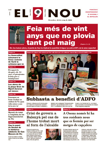 20080530 20080530 | El 9 Nou 30/05/2008 Notícies relacionades LA PREGUNTA Està d’acord amb la posició del govern espanyol sobre la guerra a l’Iran? Sí No En aquesta enquesta han votat 559 persones. Vota Les + vistes La N-260 continua tallada fins dilluns "com a mínim" per l'esllavissada a Sant Joan Dues botigues d'un mateix joier pateixen dos atracaments a Vic en menys de quinze dies Condueix sense carnet i té un accident a la carretera de Taradell a Santa Eugènia Dos incendis en uns baixos de Vic en poca estona i a 500 metres de distància Què és aquest color verd del marge del riu Méder? Troben sense vida al Collsacabra un home que estava en recerca des del matí Vic tanca un grup d’I3 a l’escola La Sínia i Manlleu, al Puig-Agut Mor una dona en caure des d'un vuitè pis a Vic Detingut per una agressió sexual a Sant Joan de les Abadesses Alerta pels cabals dels rius Ter a Sant Joan de les Abadesses i Ges a Torelló, que han assolit el llindar de perill