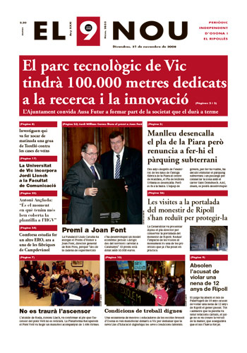 20081121 20081121 | El 9 Nou 21/11/2008 Notícies relacionades LA PREGUNTA Està d’acord amb la posició del govern espanyol sobre la guerra a l’Iran? Sí No En aquesta enquesta han votat 559 persones. Vota Les + vistes La N-260 continua tallada fins dilluns "com a mínim" per l'esllavissada a Sant Joan Dues botigues d'un mateix joier pateixen dos atracaments a Vic en menys de quinze dies Condueix sense carnet i té un accident a la carretera de Taradell a Santa Eugènia Dos incendis en uns baixos de Vic en poca estona i a 500 metres de distància Què és aquest color verd del marge del riu Méder? Troben sense vida al Collsacabra un home que estava en recerca des del matí Vic tanca un grup d’I3 a l’escola La Sínia i Manlleu, al Puig-Agut Mor una dona en caure des d'un vuitè pis a Vic Detingut per una agressió sexual a Sant Joan de les Abadesses Alerta pels cabals dels rius Ter a Sant Joan de les Abadesses i Ges a Torelló, que han assolit el llindar de perill